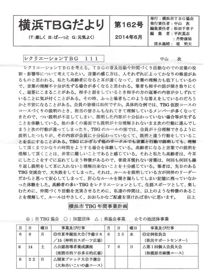 横浜市TBGだより162 号 平成26年6月