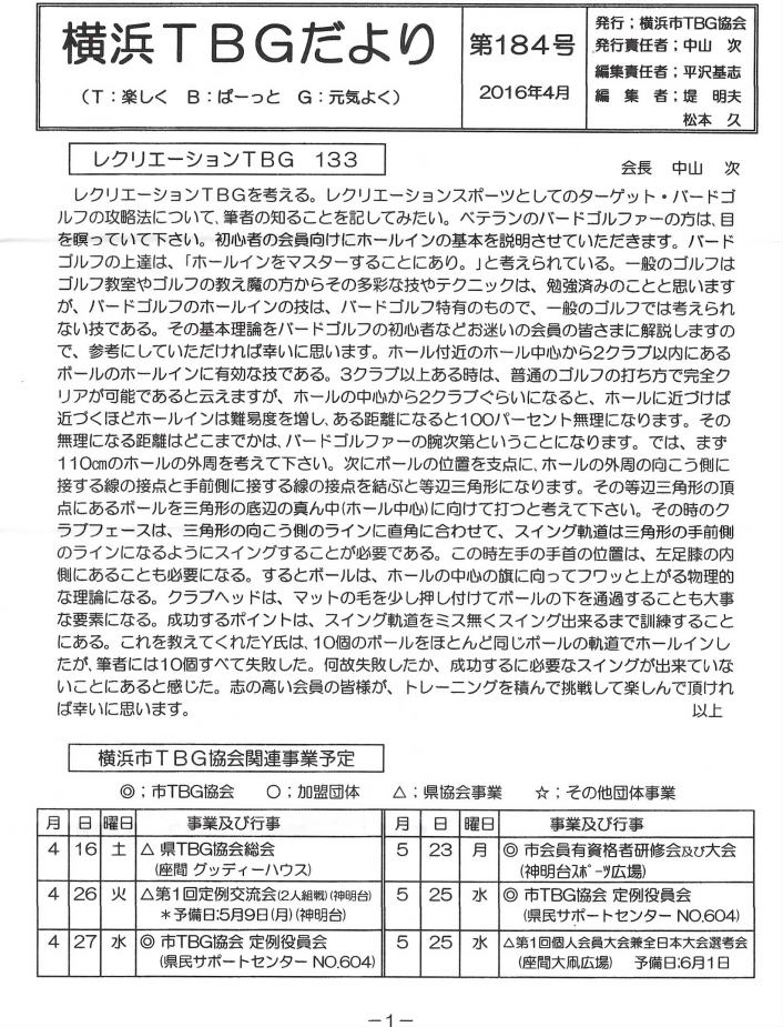 横浜市TBGだより184号 平成28年4月