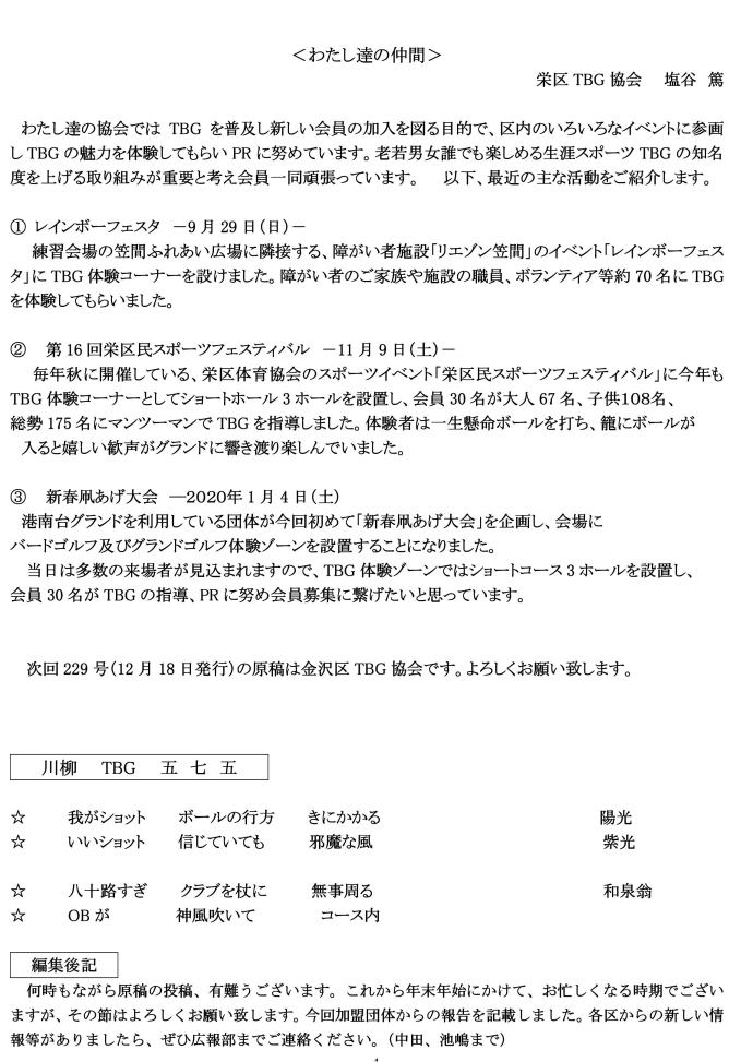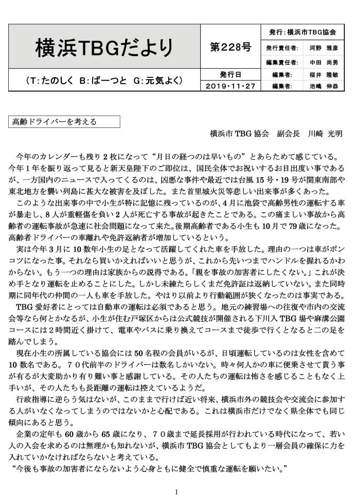 横浜市TBGだより228号 令和元年12月