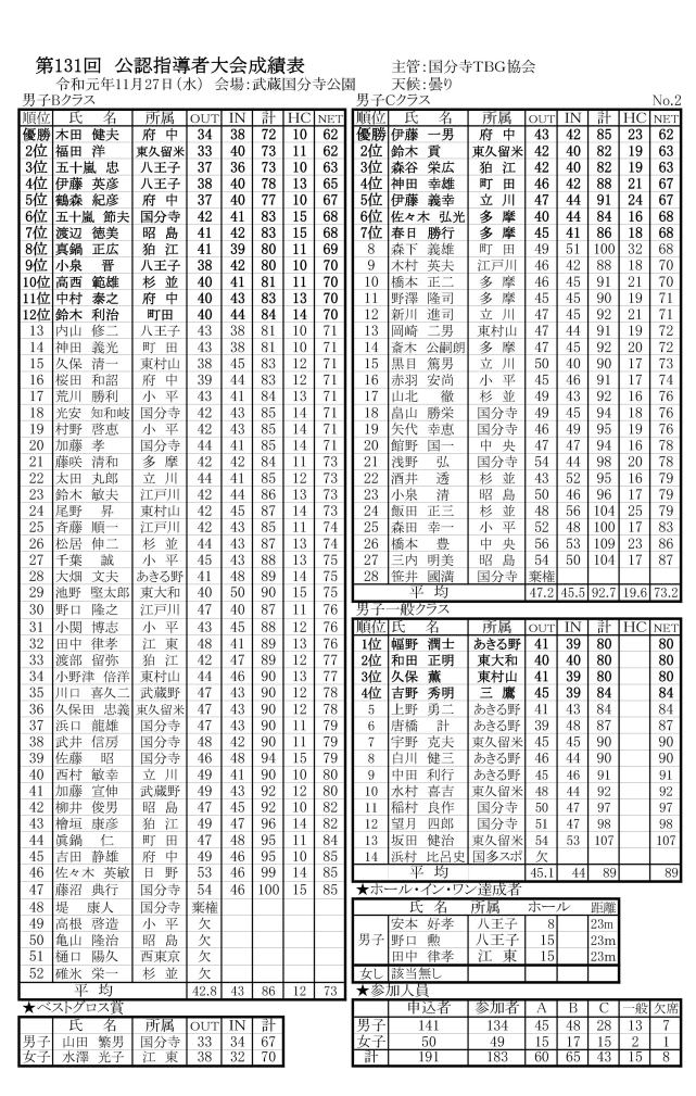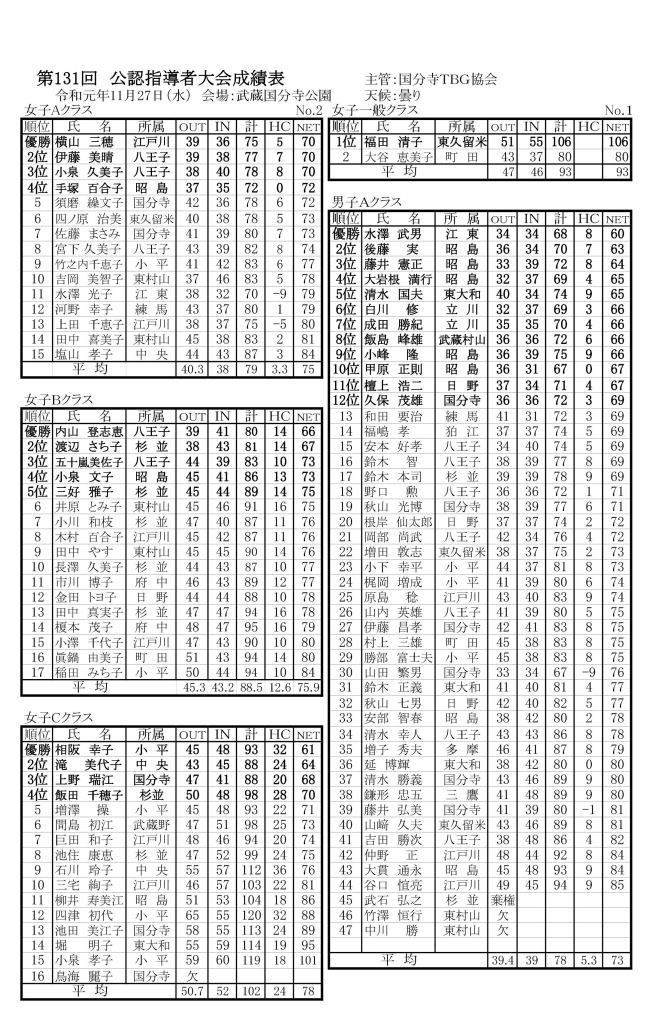 | 女子一般は順位表示が逆になっていました。スコアは正しいです。1位は大谷恵美子さん。 |